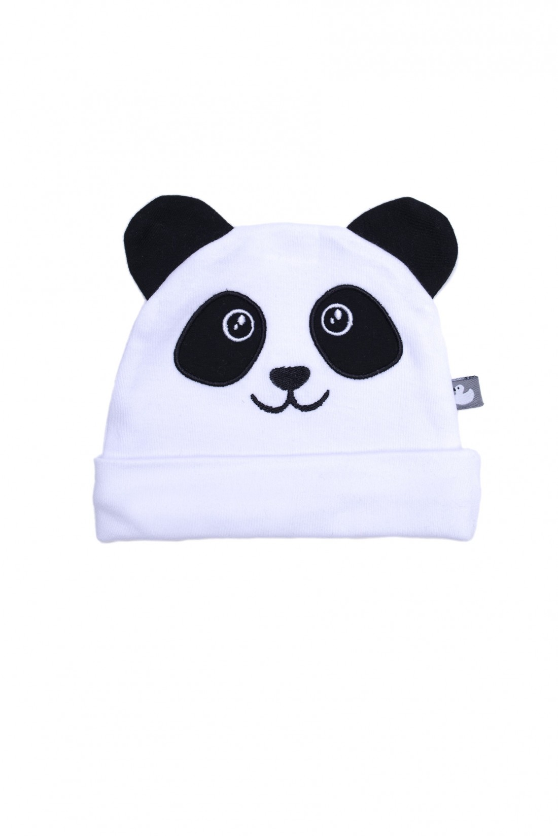 Bedecken Sie Ihren kleinen Engel mit dieser weiß-schwarzen, mit Baumwolle gefütterten Mütze mit kleinen Pandaohren.