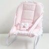 Dieses Modell hat eine puderrosa Farbe mit weißen, schlangenförmigen Borten, die durch das subtile Detail der kleinen rosa Schleife, die das Baby in einer stabilen Position hält, noch verstärkt werden.