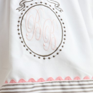 Stubenwagenrock – Couture-Medaillon – Weiß und Taupe gestreift