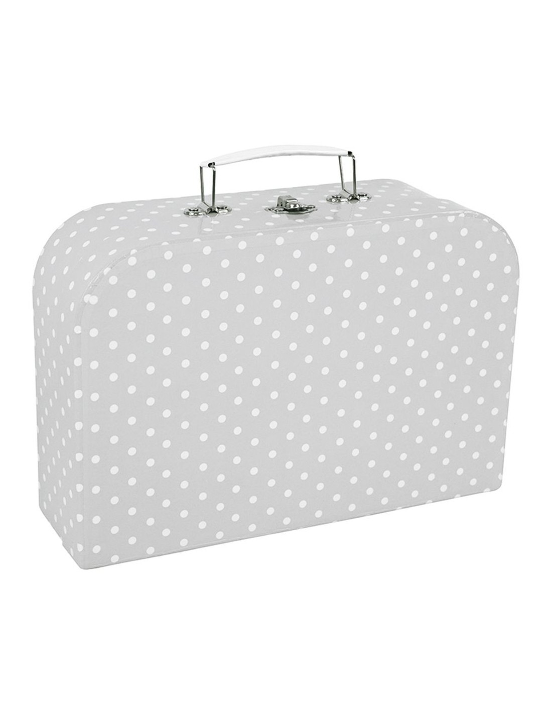 Grau gepunktetes Teeservice in der Dose mit Pappbeutel.