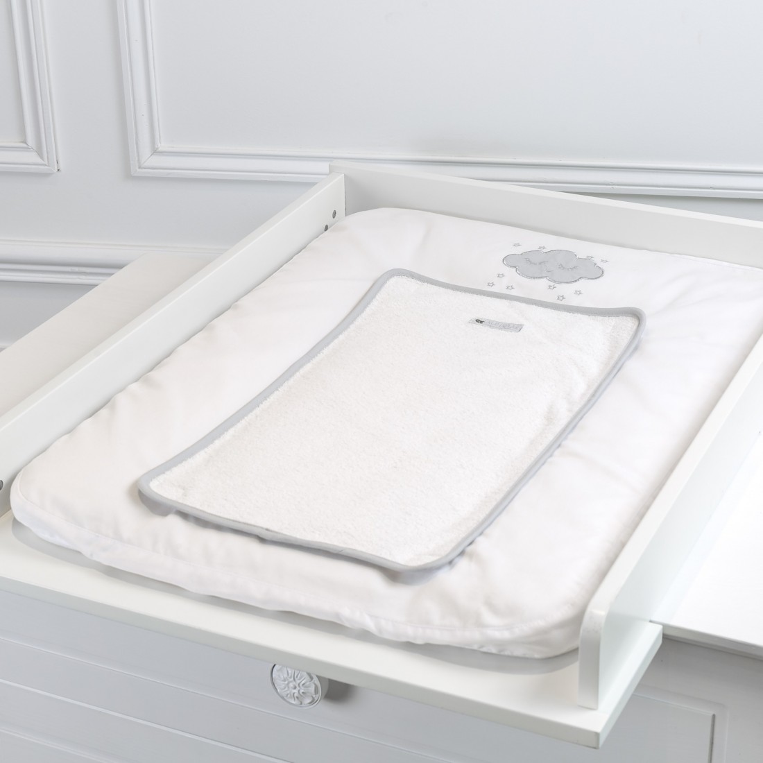 Diese Wickelauflage wird mit einem Bezug und einem abnehmbaren Frotteehandtuch aus der Nuage-Kollektion geliefert. Es sorgt für Weichheit und Komfort beim Wickeln Ihres Babys.