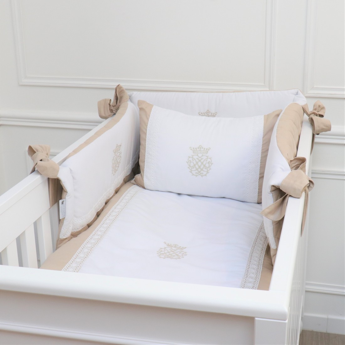 Bettnestchen – U-Form – Arabeske – Weiß und Beige