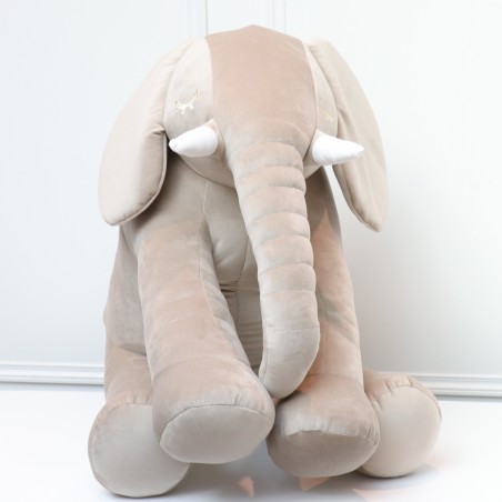Entzückender handgefertigter Elefant, überzogen mit einem leicht zu waschenden grauen Stoff. Es wird der beste Freund Ihres Kindes und eine schöne Dekoration in Ihrem Zuhause sein.