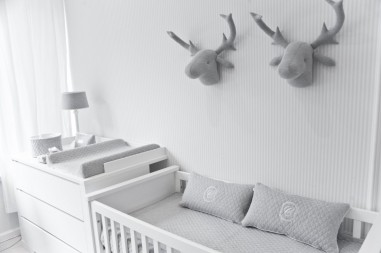 Diese graue Elchdekoration passt perfekt zu einer originellen und eleganten Schlafzimmereinrichtung. Es fühlt sich weich an und ist auf handwerkliche Weise aus Baumwolle gefertigt.