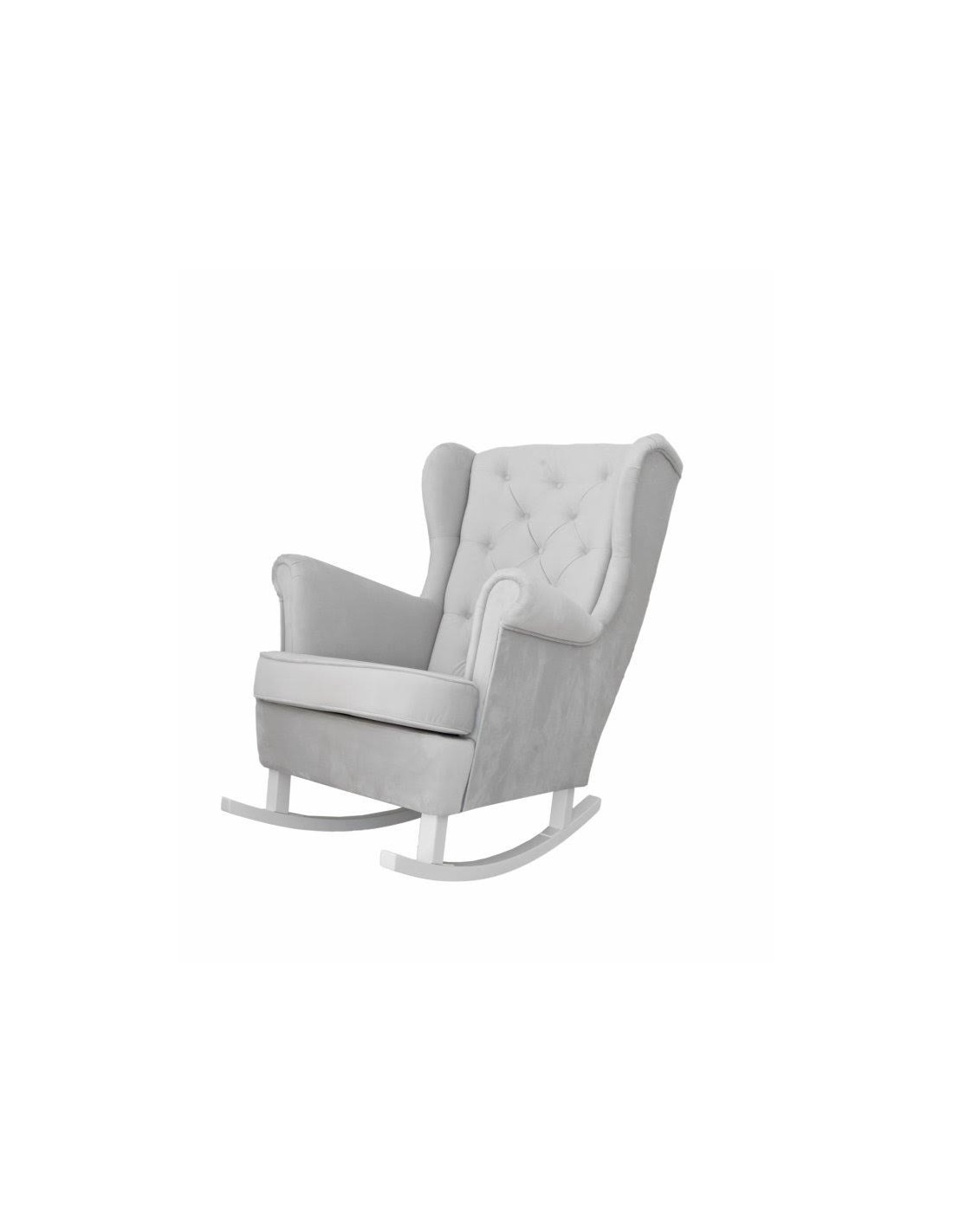 Dieser große Schaukelstuhl ist sowohl bequem als auch elegant und besteht aus hochwertigem, waschbarem Textil.