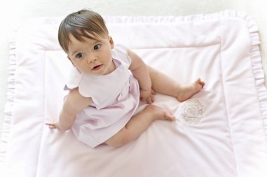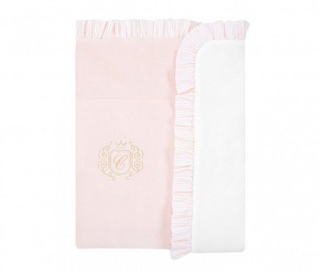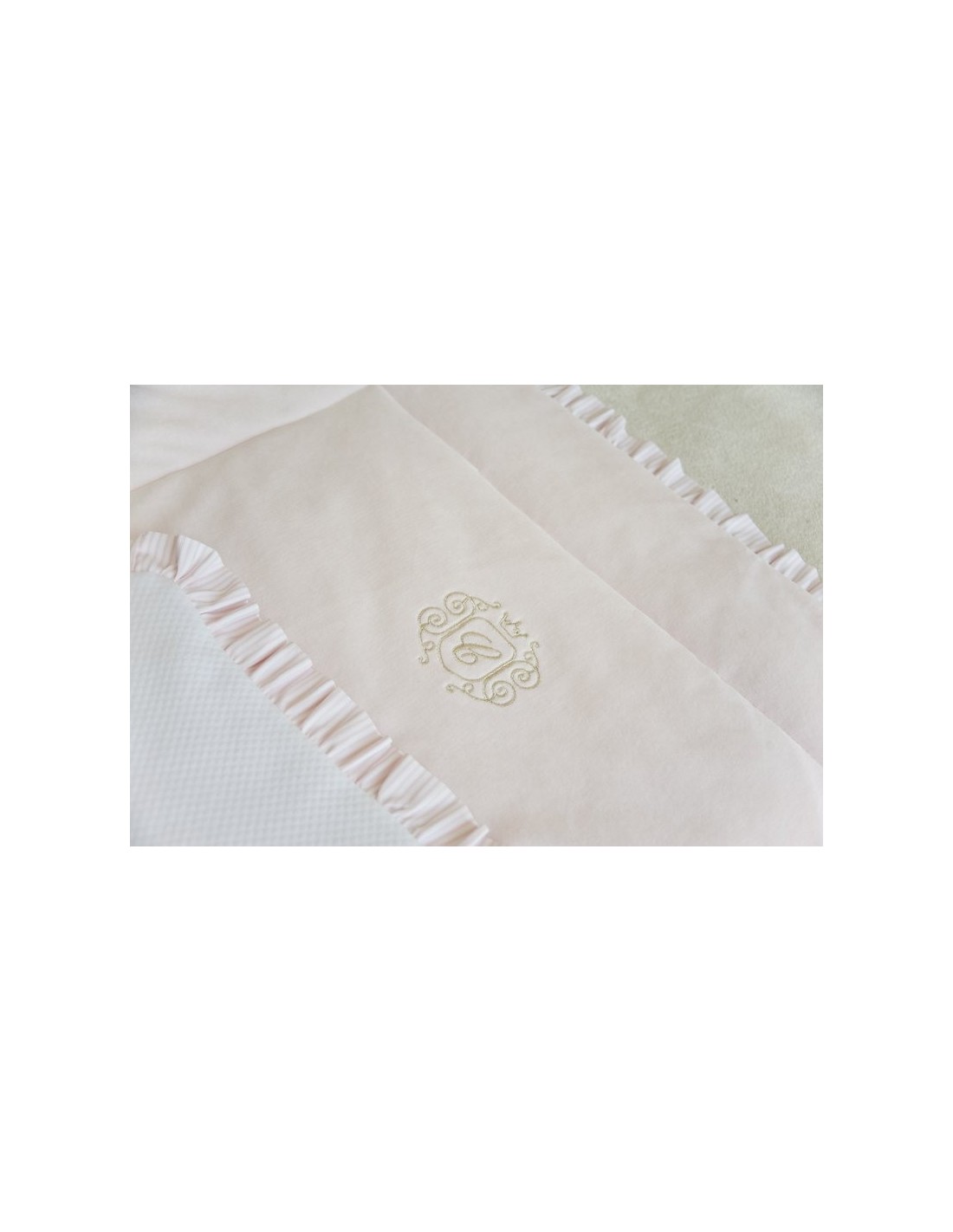 Eine wunderschöne puderrosa, weiß gestreifte Bettumrandung aus der Exclusive-Kollektion.