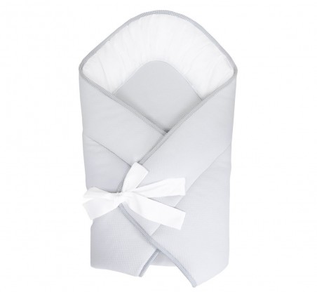 Sein elegantes Schlafnest. Es ist aus grauem Waffelstoff gefertigt und mit Fleece gefüllt, was es sehr schön warm macht. Es ist sehr bequem zu bedienen - an einem Bogen befestigt. Es weist keine Versteifungen auf und eignet sich im ausgebreiteten Zustand auch perfekt als Sommerbettdecke.