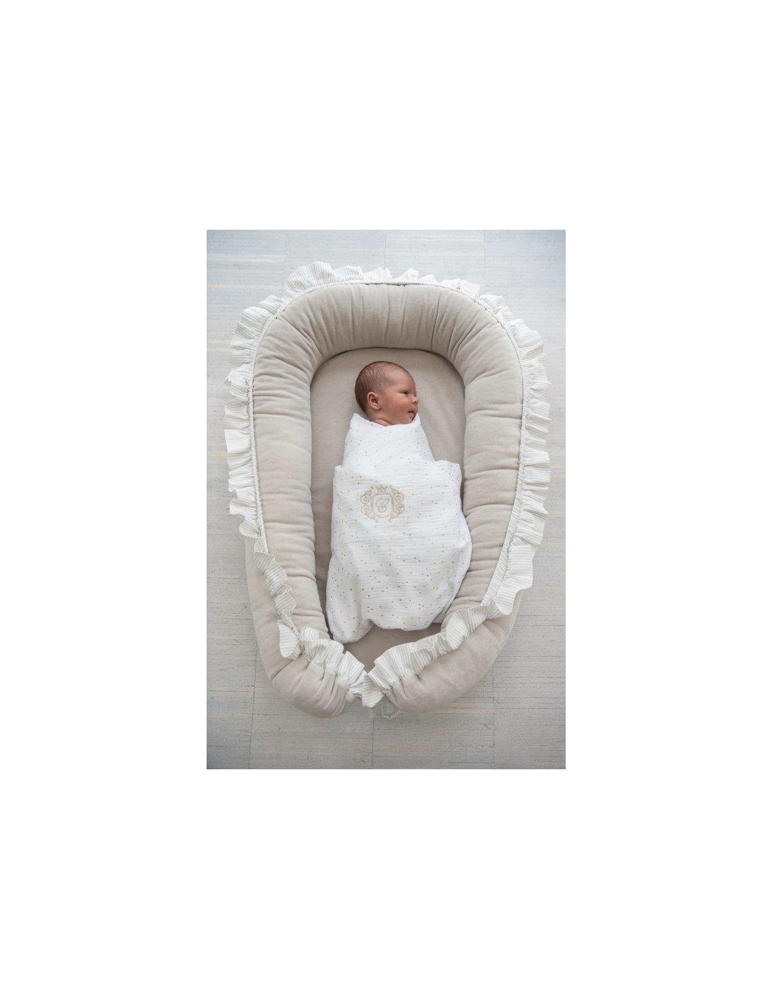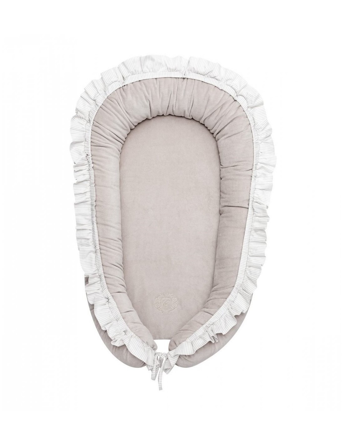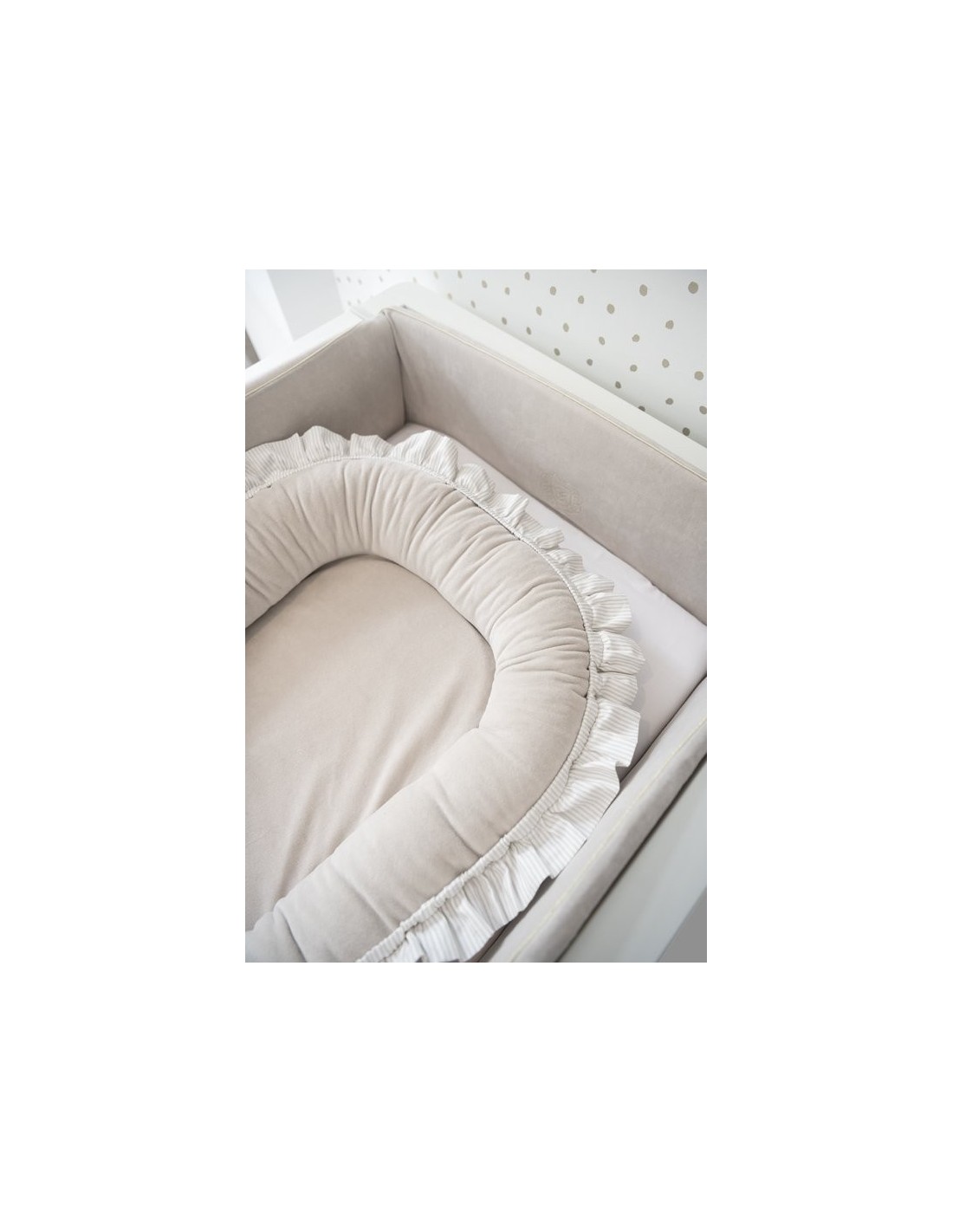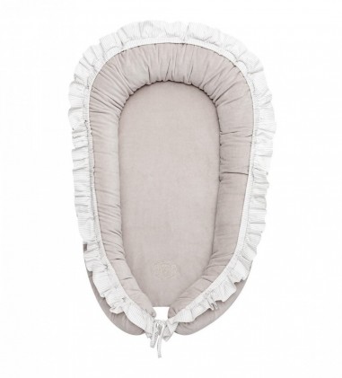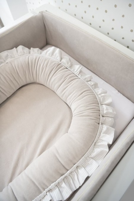 Ein elegantes und funktionelles Reduzierstück aus Samtstoff. Es besteht aus einem Deckel und einem herausnehmbaren Einsatz. Es kann im Elternbett, auf dem Boden oder auf dem Sofa verwendet werden. Perfekt für Kinder bis 6 Monate.