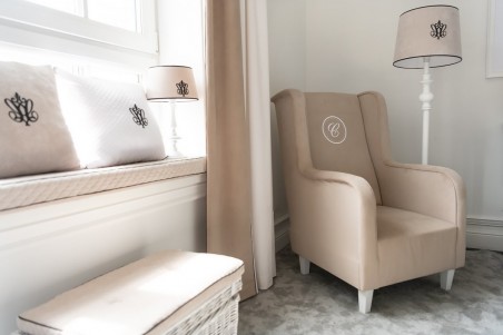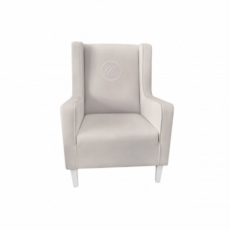 Ein großer, sehr bequemer Ohrensessel im modernen Stil, hergestellt aus hochwertigem, waschbarem Textil in der Farbe Beige. Der Sessel ist mit einem grauen Kordelbesatz und einem exklusiven Emblem mit dem Buchstaben „C“ verziert. Unser Stillstuhl wird wegen seiner „Ohren“ und der hohen Rückenlehne von allen stillenden Müttern geschätzt. Darüber hinaus wird es jedes Interieur bereichern – Kinderzimmer, Wohnzimmer und andere.