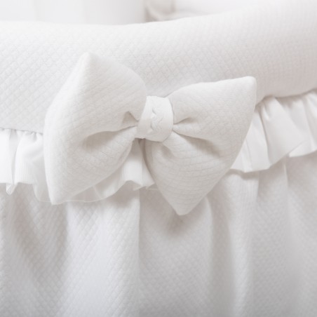 Bezug und Matratze aus 100 % Baumwolle – hergestellt von Cocon d'amour in seinen Werkstätten in EuropaKorpus aus Naturgeflecht und Ledergriffe – hergestellt von unserem europäischen Partner