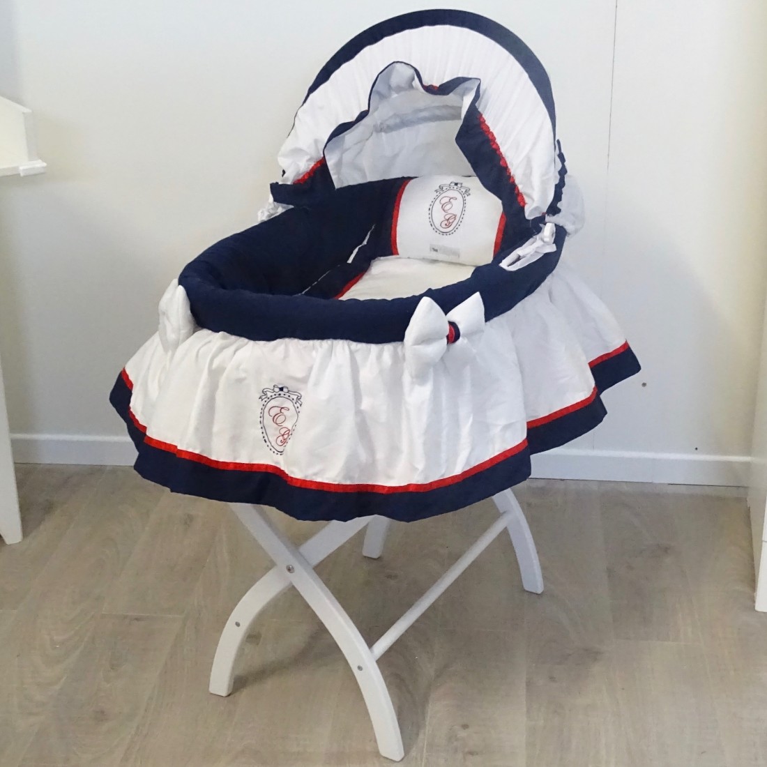 Moisés con falda - Medallón Couture - Blanco y azul marino