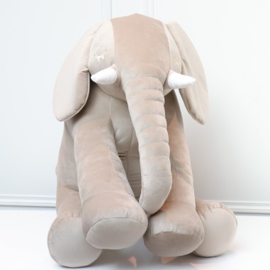 Adorable elefante hecho a mano cubierto con un tejido gris fácil de lavar. Será el mejor amigo de su hijo y una hermosa decoración en su hogar.