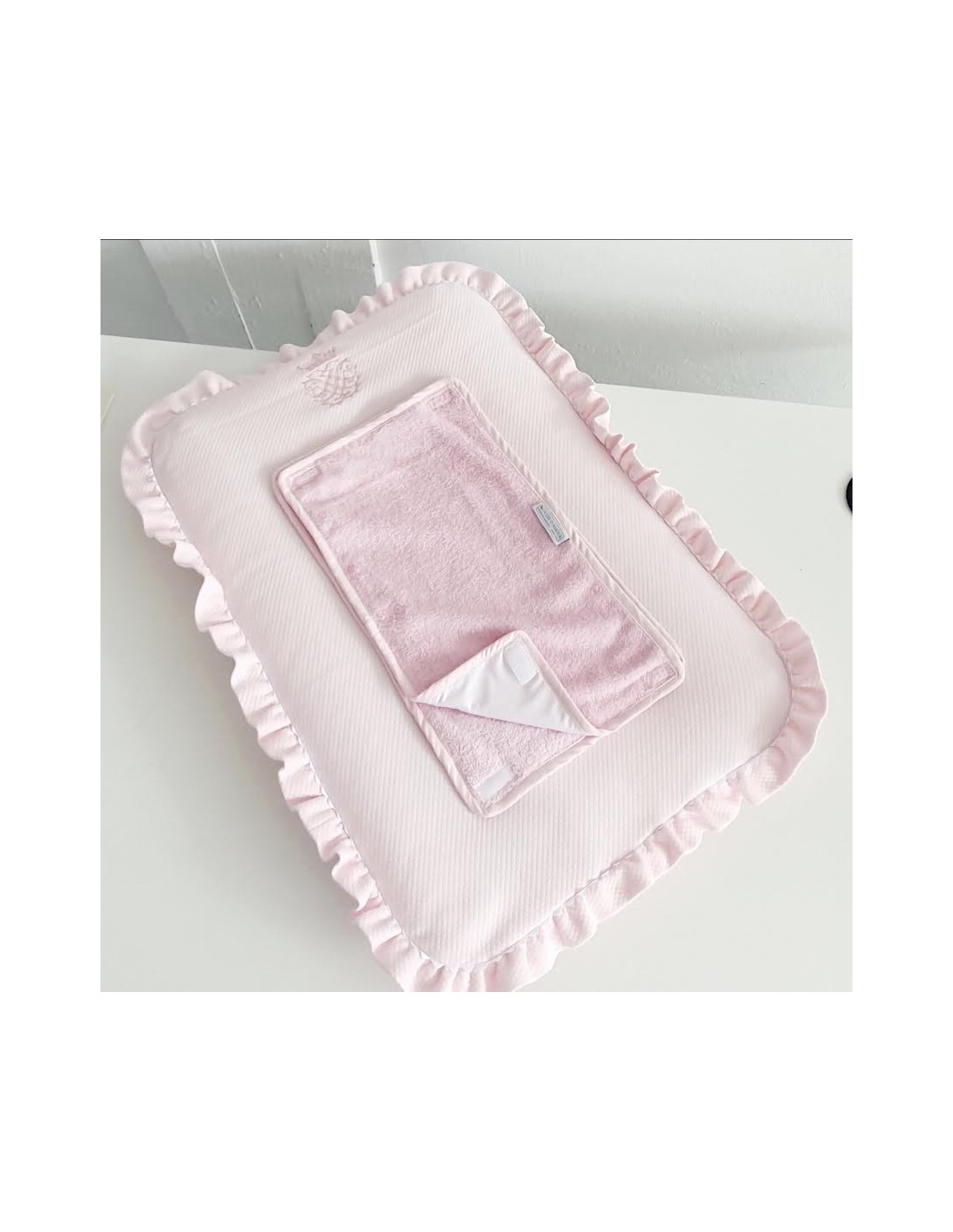 Un bonito cambiador con relieve rosa, cómodo y elegante.