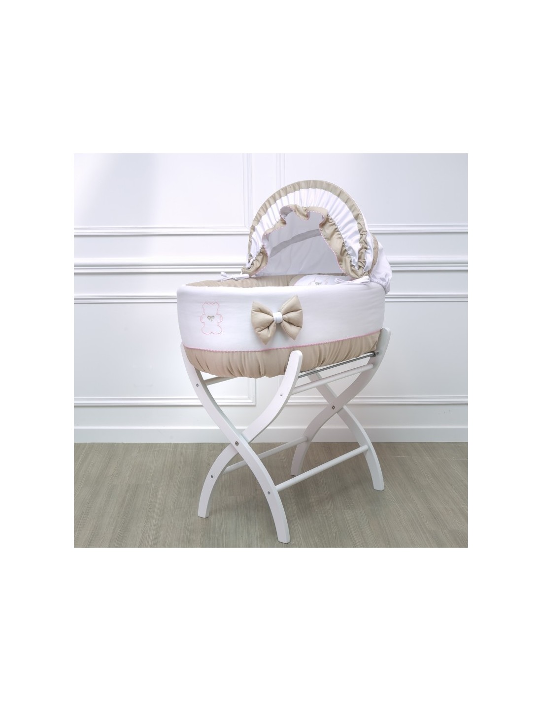 Moisés acolchado - Biscuit Teddy - Beige, blanco y rosa