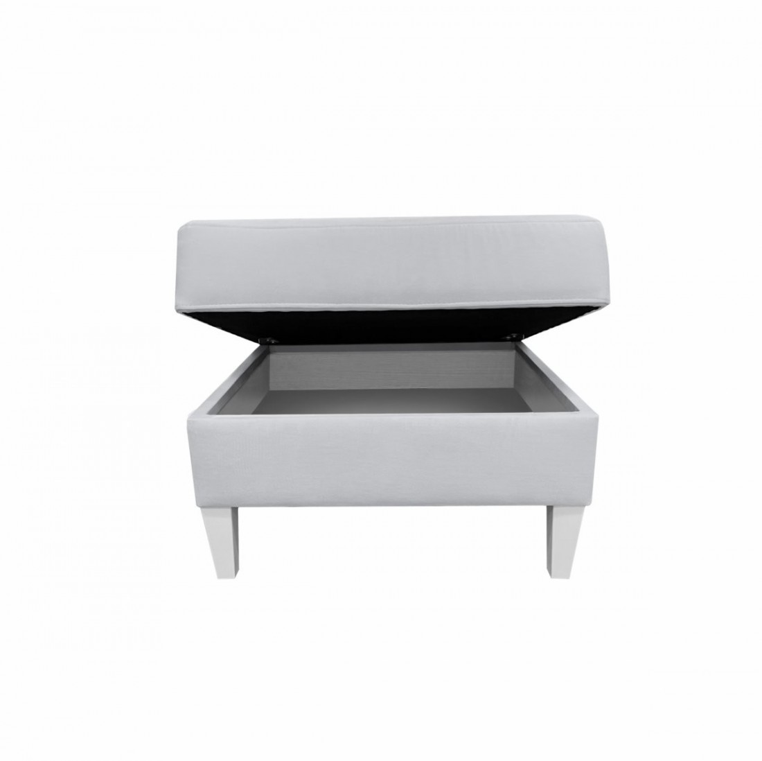 Un elegante puf en tejido lavable gris perla. La otomana también es un baúl: tiene una tapa que se abre y espacio de almacenamiento. Es un bonito mueble para la habitación, el dormitorio o el salón del niño.