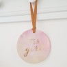 Ya sea para un anuncio o simplemente como decoración, este disco "Es una niña" combinará perfectamente con la decoración de la habitación de tu bebé