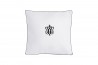 Adorable almohada de terciopelo acolchado color beige. Estaba decorado con un canesú negro y bordados.