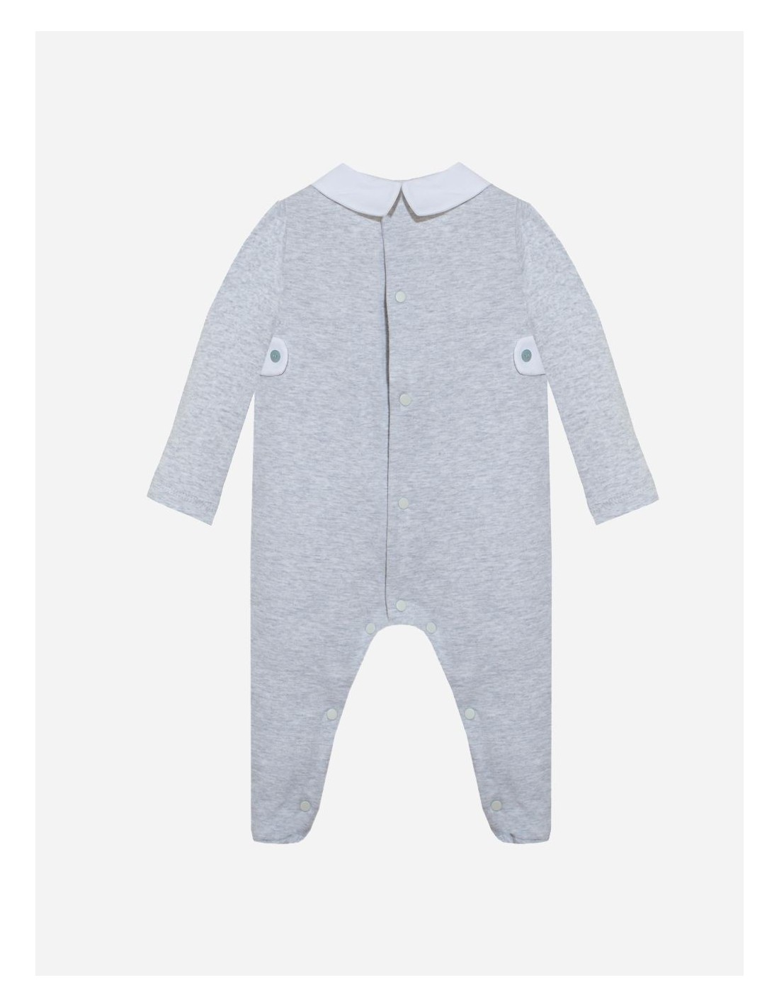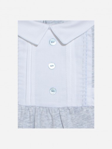 ¡Trabajado en blanco y gris con un pequeño acabado azul, este pijama se adaptará tanto a un principito como a una princesita!