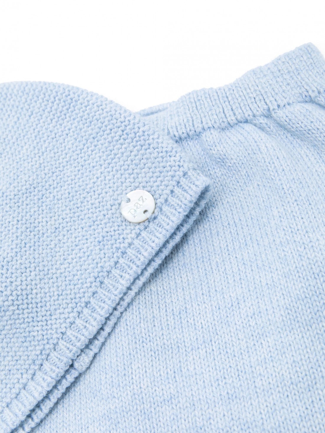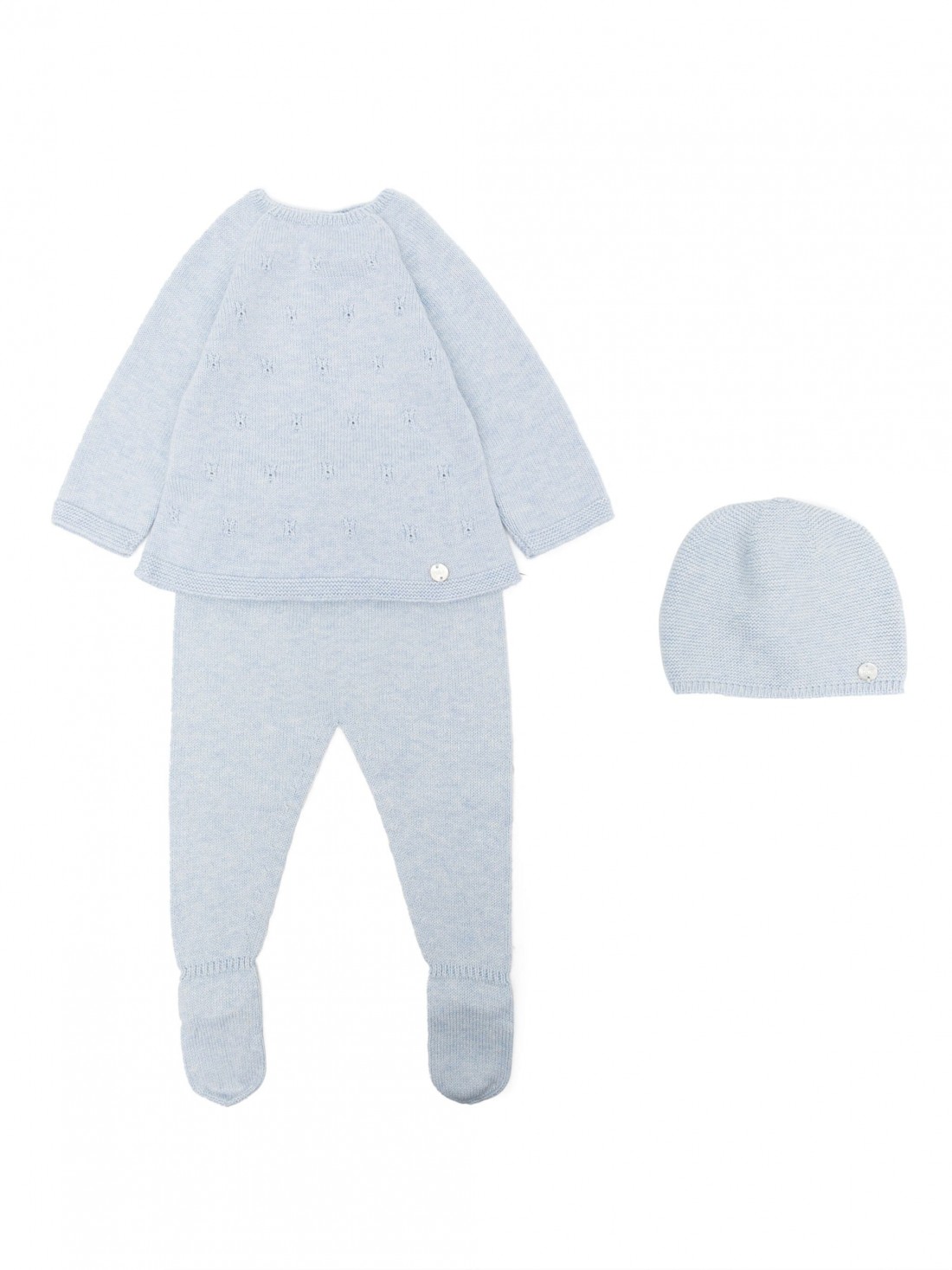 Azul cielo, mezcla de algodón y cachemira, diseño de punto, bordado, placa con logo, escote redondo, manga larga, pantuflas, juego de tres.