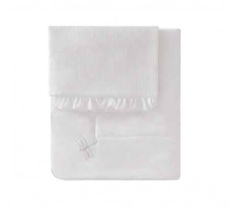 Une couverture chaude dans une teinte ivoire en velours doux aux textures variées - unie. Décoré d'une broderie libellule. L'oreiller est fini avec un volant en voile transparent. La couverture sera parfaite comme cadeau.