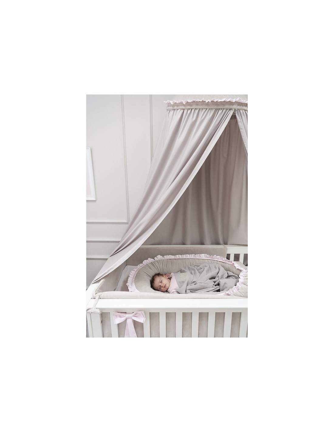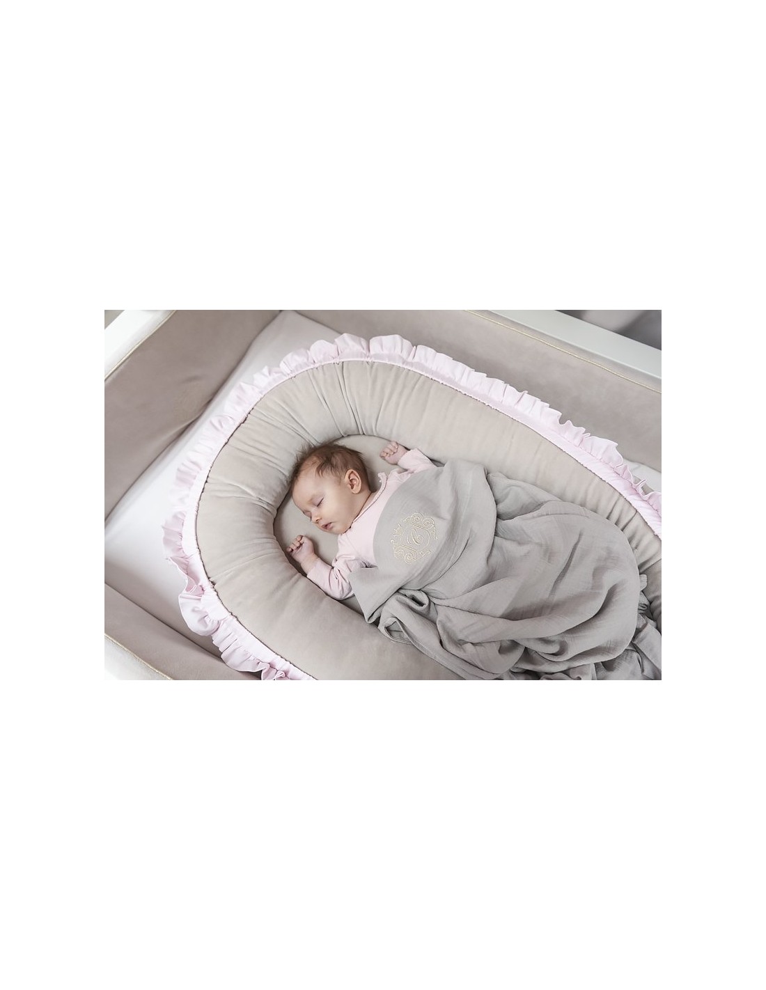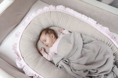 Un réducteur élégant et fonctionnel en textile velours. Il se compose d'un couvercle et d'un insert amovible. Il peut être utilisé dans le lit des parents, au sol ou sur le canapé. Parfait pour les enfants jusqu'à 6 mois.