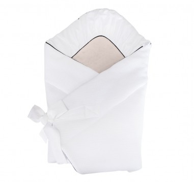 Petit nid de sommeil élégant pour les nouveau-nés. Il est fait de coton gaufré blanc doublé de velours beige et rempli d'une polaire, ce qui le rend très agréable et chaud. Il est très confortable à utiliser - attaché à un arc. Il n'a aucun raidissement, et une fois déplié il sera aussi parfait comme couette d'été.