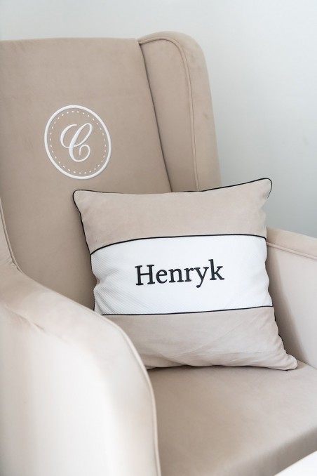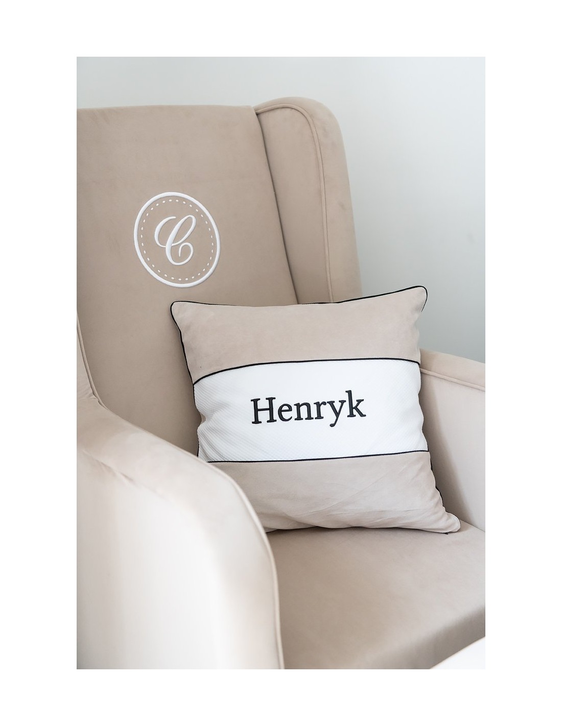 N'oubliez pas de sauvegarder votre personnalisation pour pouvoir l'ajouter au panierAdorable coussin en velours beige orné d'un empiècement noir et d'une broderie au prénom de votre enfant.