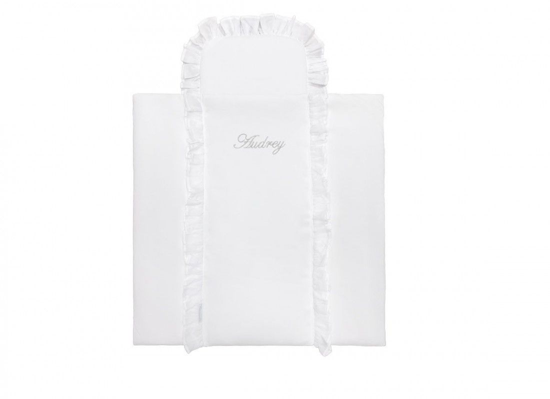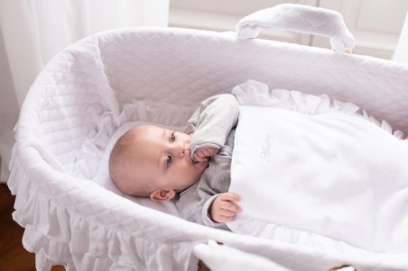 N'oubliez pas de sauvegarder votre personnalisation pour pouvoir l'ajouter au panierParure de lit de luxe pour le panier de Moïse. Idéale également pour une gondole, un berceau et un couffin en osier. La parure de lit est rembourrée et décorée d'un adorable volant en voile et d'une broderie au nom de votre enfant.