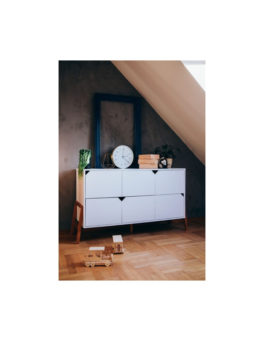 Ce meuble dispose de 6 tiroirs spacieux et est idéal pour une chambre d'enfant ou une chambre parentale, notamment grâce à sa capacité à accueillir une table à langer.