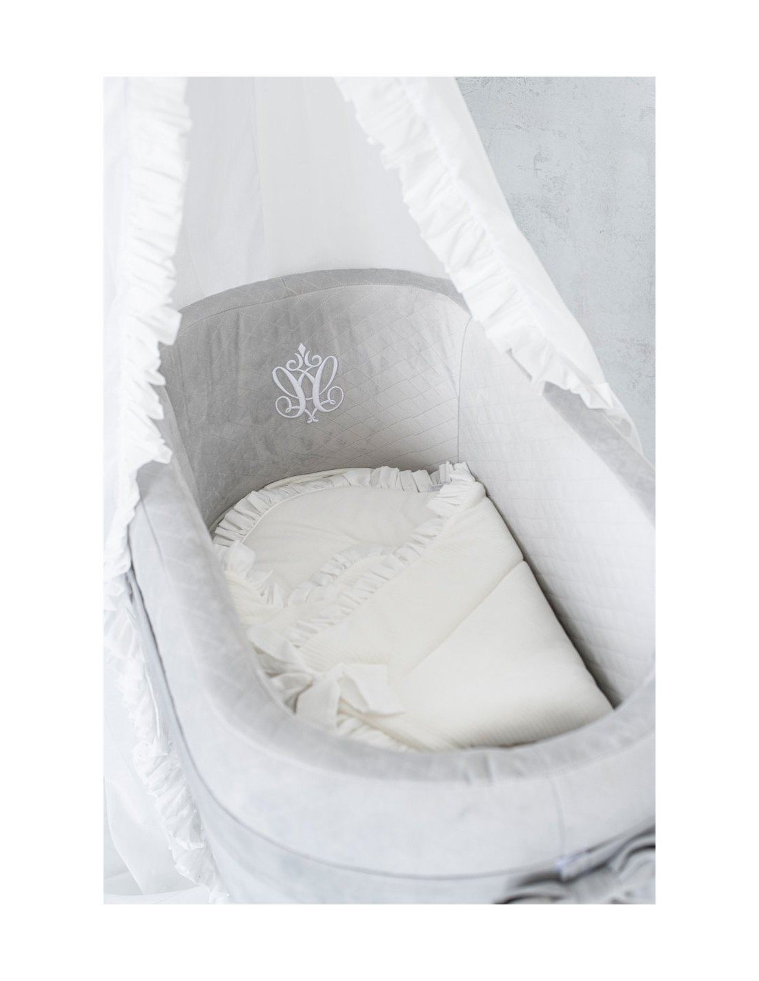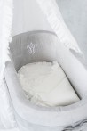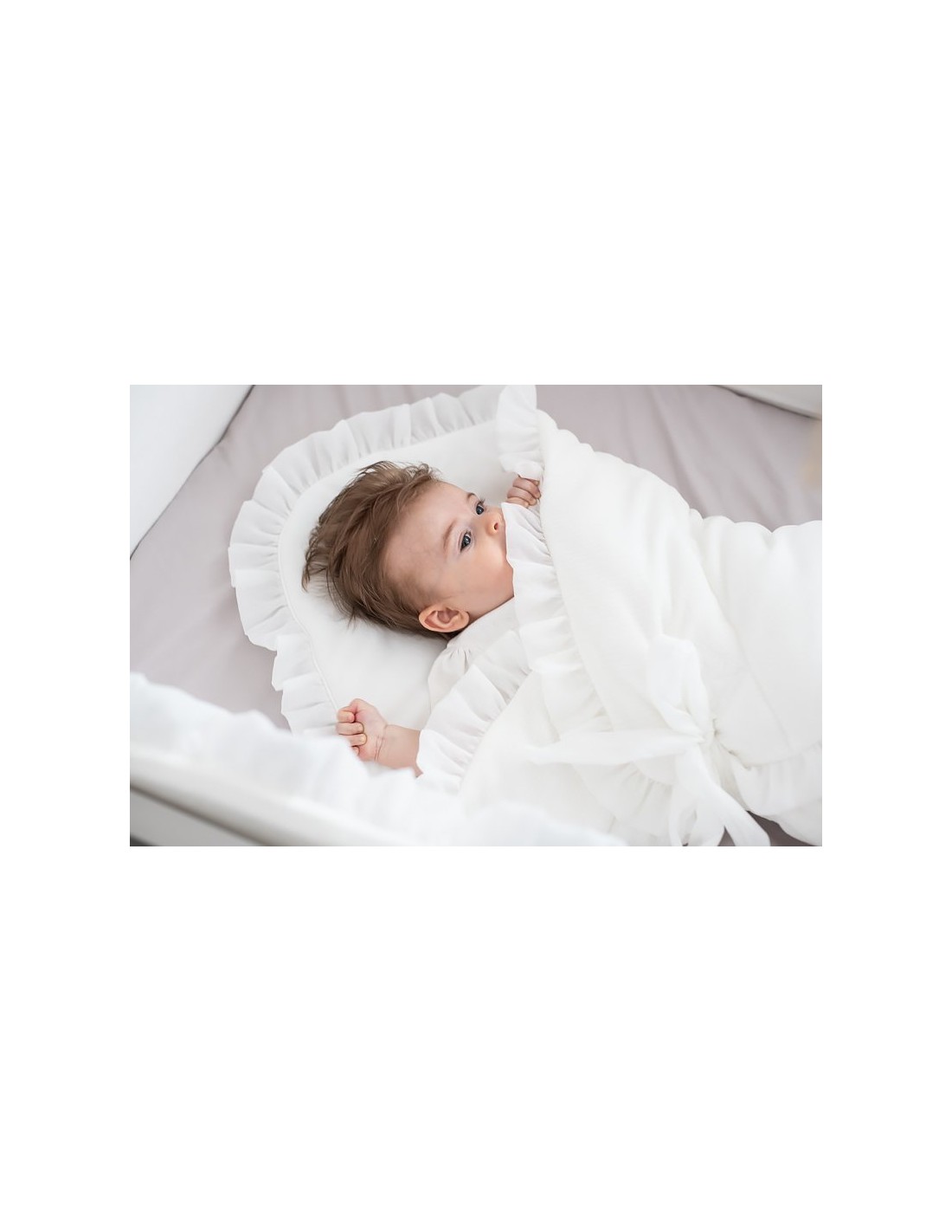 Nid de sommeil élégant pour nouveau-né. Confectionnée en velours ivoire et garnie de polaire, il est très agréable et chaud. Orné d'un volant en voile transparent, il est très confortable grâce à son nœud. Sans raidissement, il est également parfait comme couette d'été une fois dépliée.