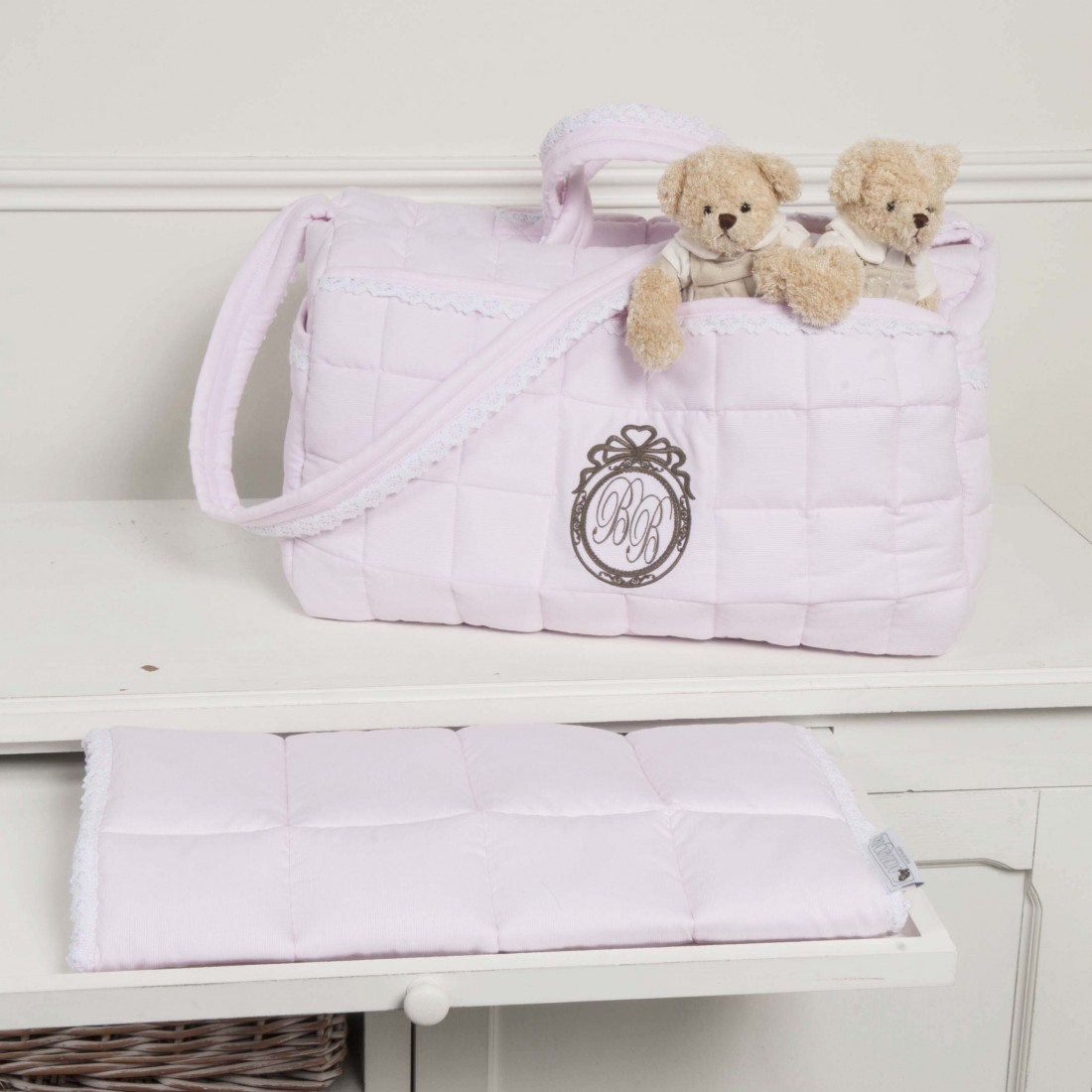 Della collezione medaglione couture, è rosa e bianco e può contenere biberon e accessori da toilette