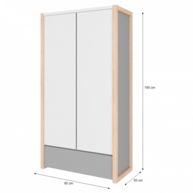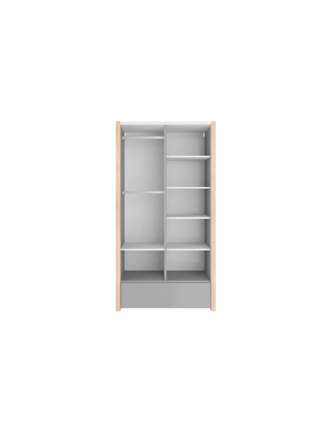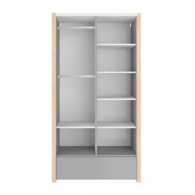Chic, originale e moderno grazie al mix di legno MDF e legno naturale, questo mobile è dotato di sei ripiani, un ampio cassetto e un armadio.