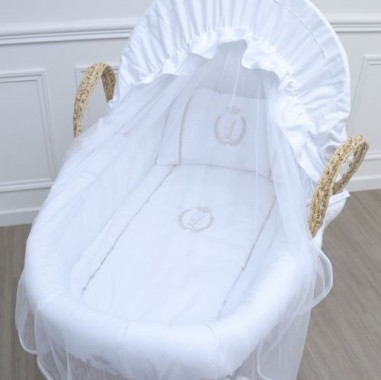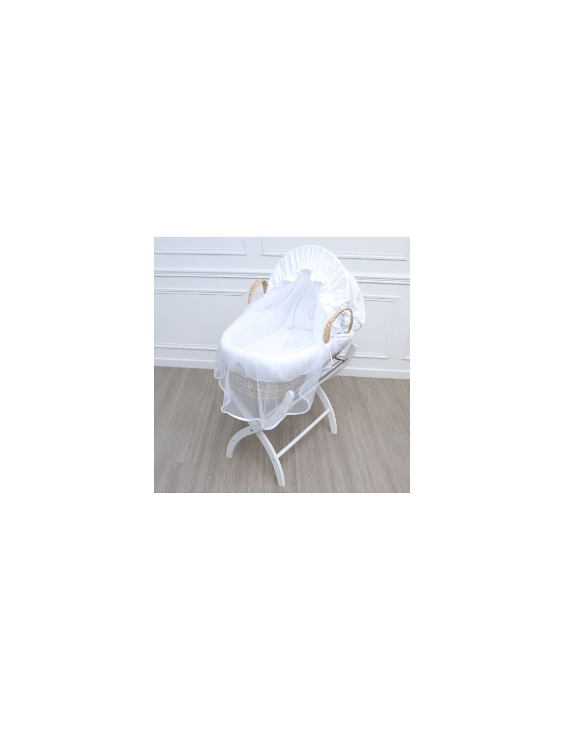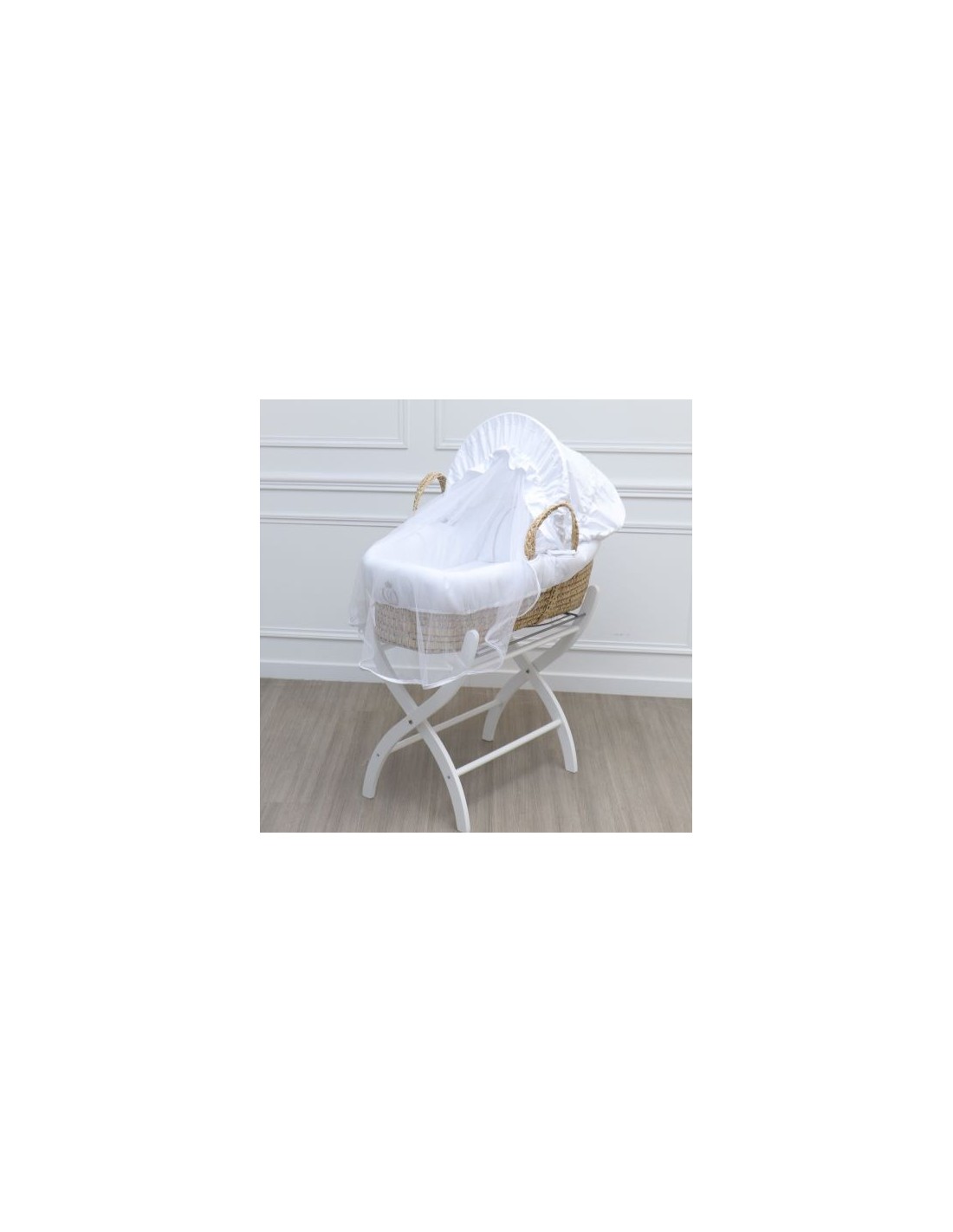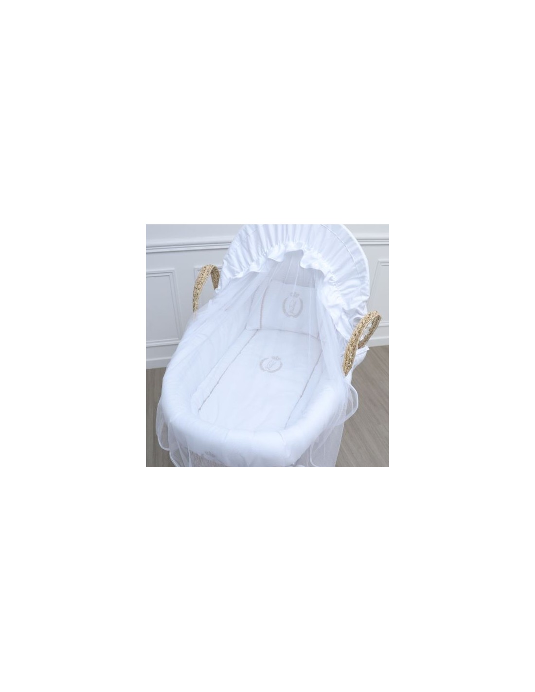 Questa culla in cotone bianco è dotata di eleganti maniglie. Le sue finiture a nodo bianco gli conferiscono un sottile tocco di originalità, su una base di palma naturale. Personalizzabile, si adatterà sia al piccolo principe che alla piccola principessa.