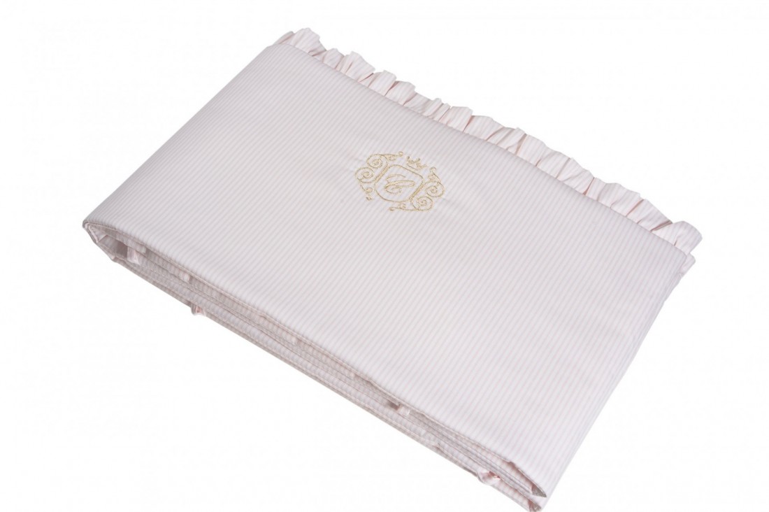Un magnifico paracolpi da letto a righe bianche e rosa cipria della collezione Exclusive.