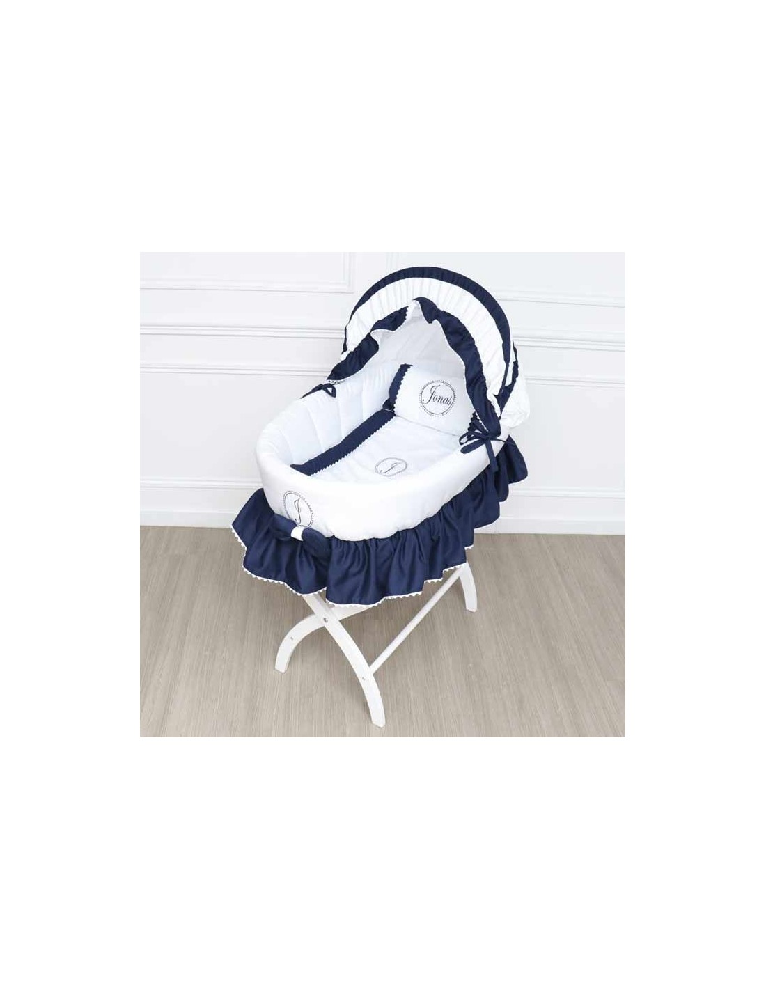 Culla con mezza gonna / mezza trapuntata - Medaglione - Bianco e blu navy
