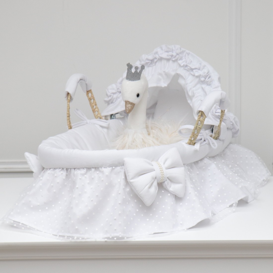 Sublime culla bianca vintage in raso di cotone garzato e plumetis.