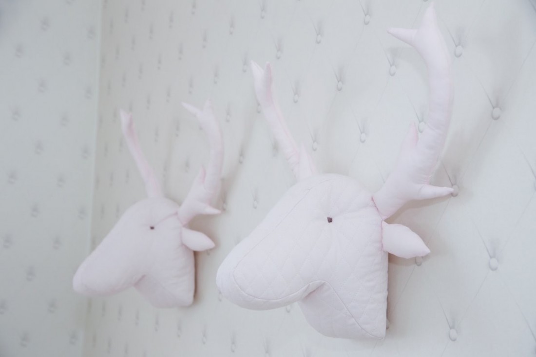 Questa decorazione Alce rosa si abbinerà perfettamente all'arredamento della camera da letto di una principessa. Morbido al tatto, è realizzato in cotone in modo artigianale.