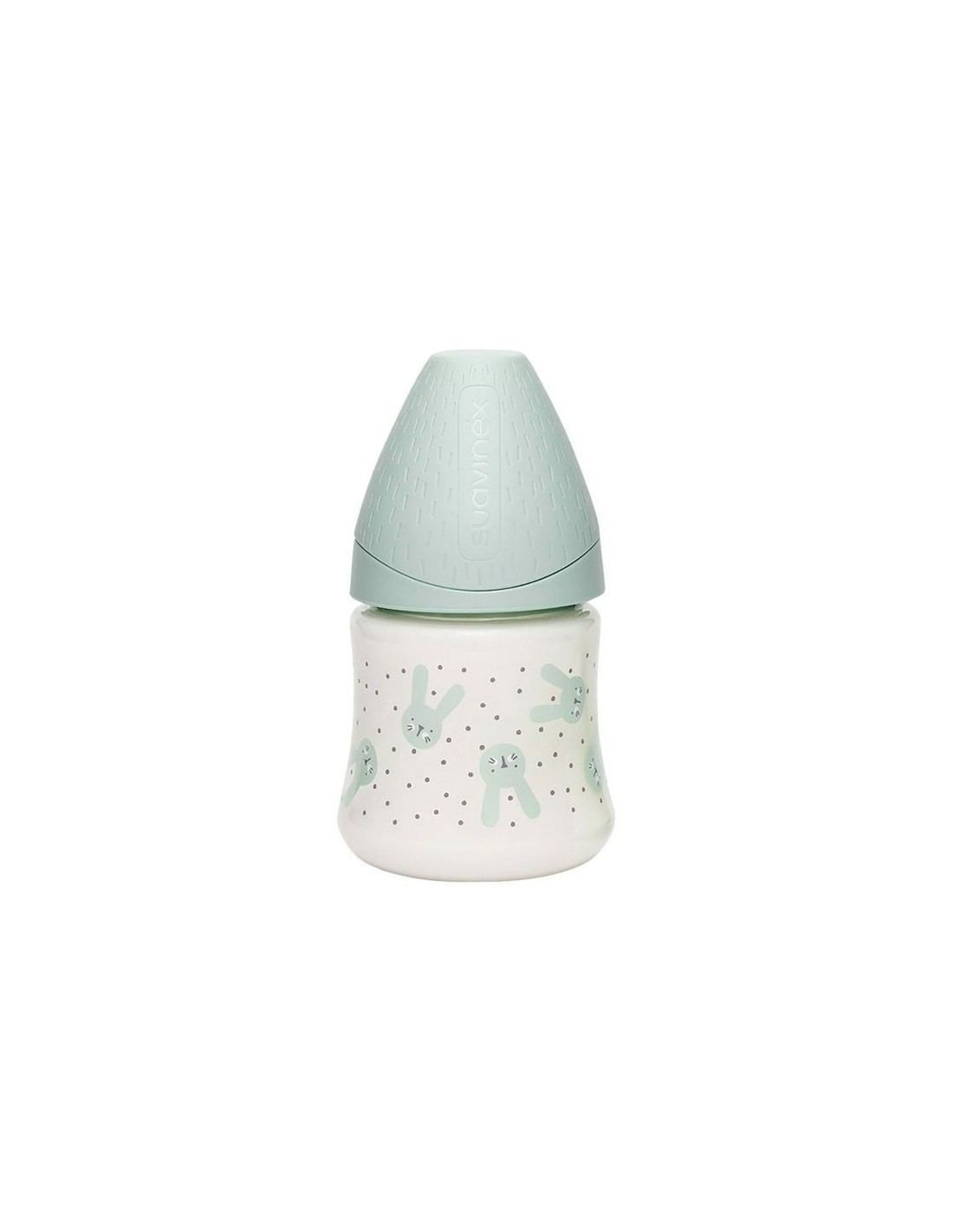 Il biberon in vetro coniglio verde da 120 ml consente un flusso adatto alle prime settimane del bambino. La valvola anticolica migliorata e integrata aiuta a prevenire le coliche infantili e i problemi di reflusso gastrico. Il suo collo ampio è pratico per versare il latte in polvere e facile da pulire.