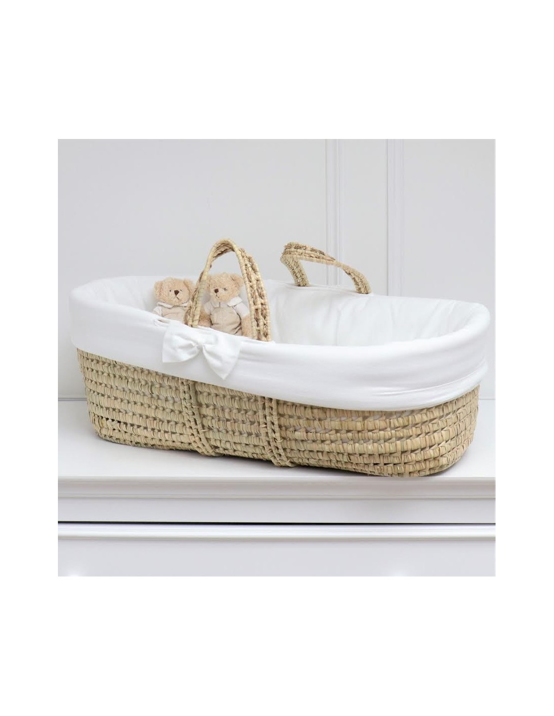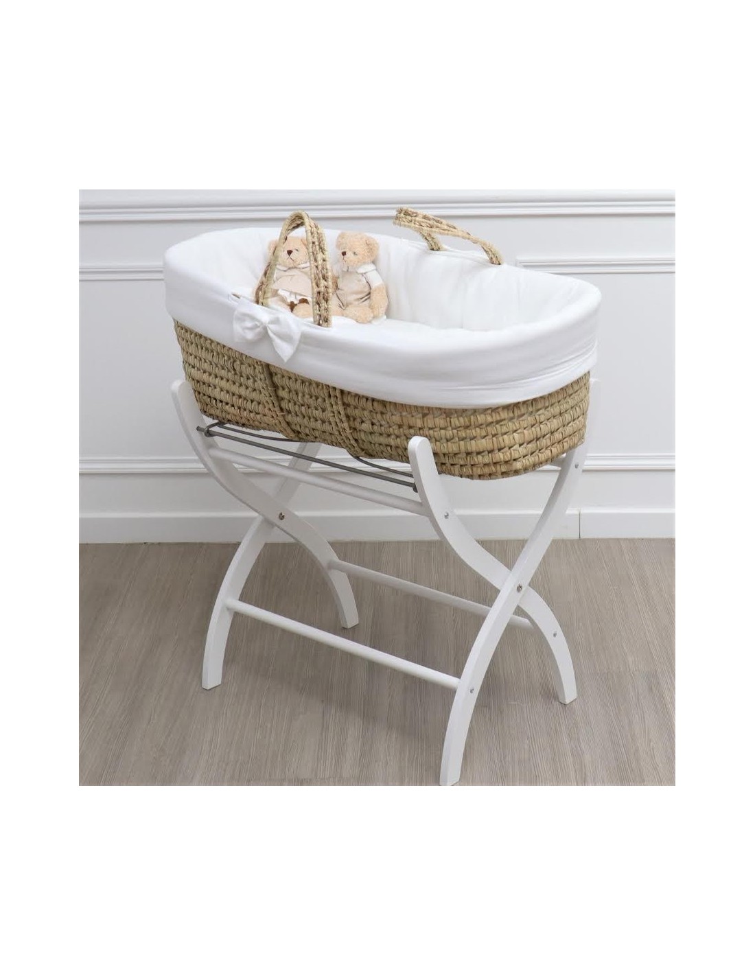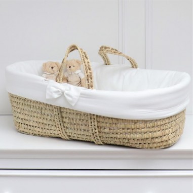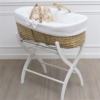 Magnifica culla in palma vestita di bianco.