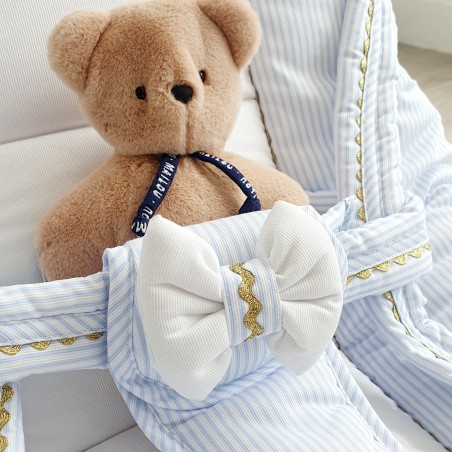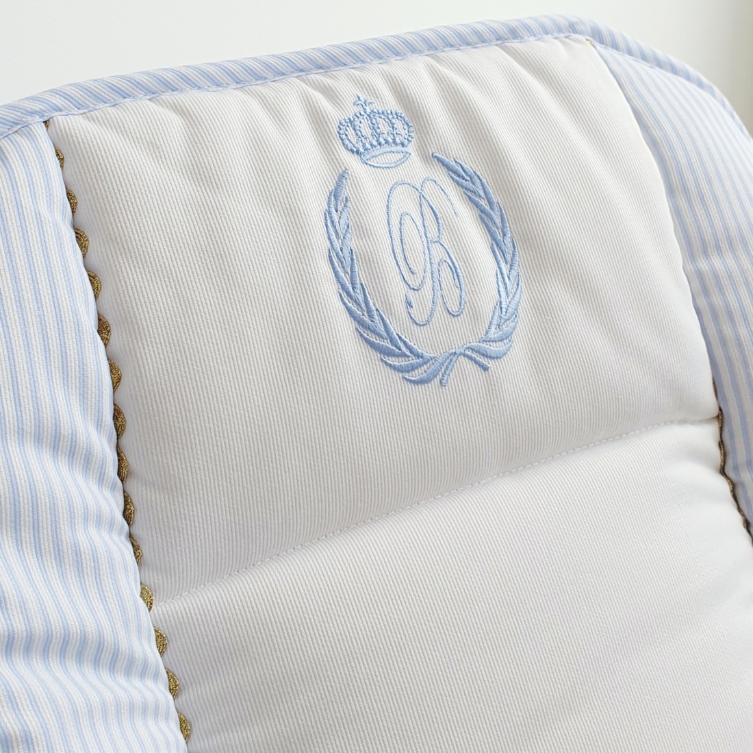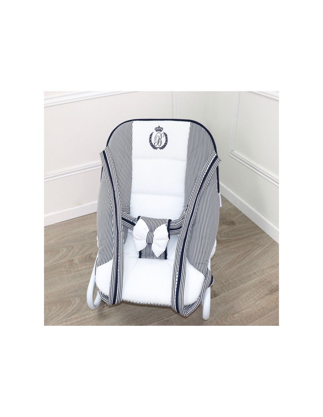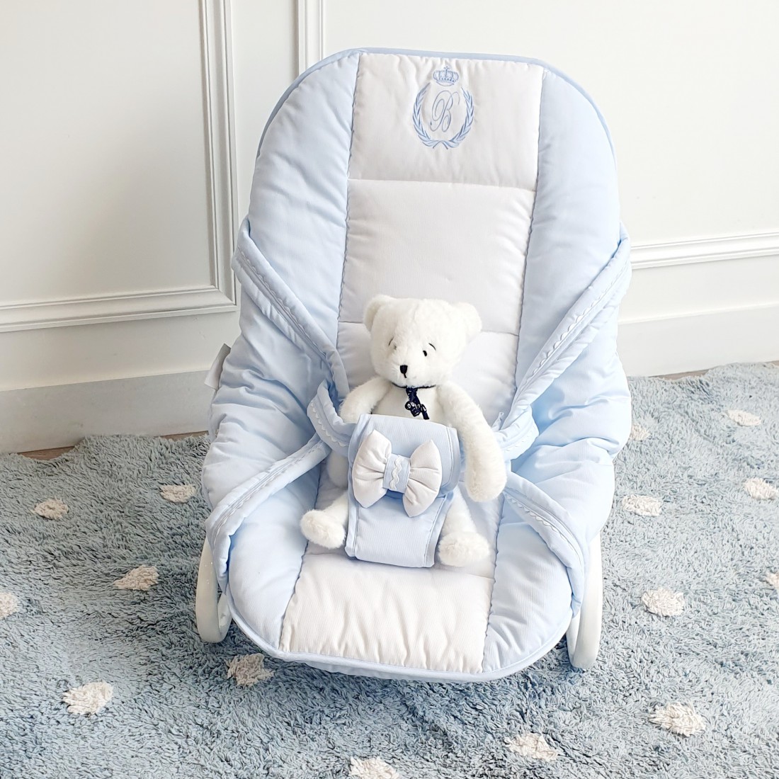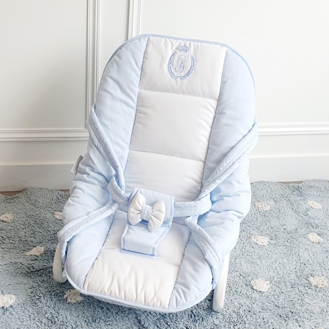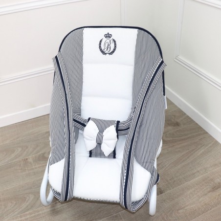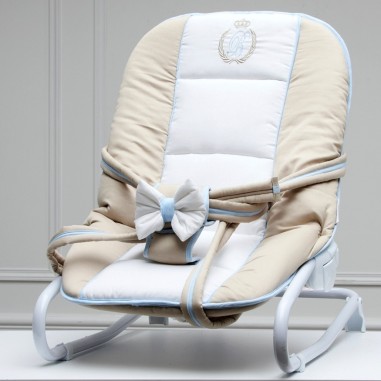 Questo modello è impreziosito dai ricami Caesar, il tutto valorizzato dal delicato dettaglio del fiocchetto bianco che mantiene il bambino in una posizione stabile.