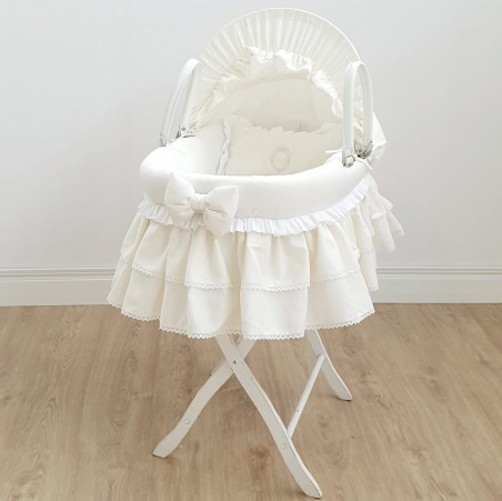 Rivestimento e materasso in cotone piquet 100% - prodotto da Cocon d'amour nei suoi laboratori in EuropaStruttura in vimini naturale e manici in pelle - prodotti dal nostro partner europeo