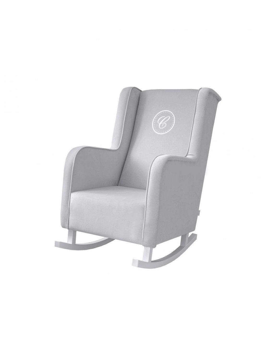 Una sedia a dondolo grande e molto confortevole in stile moderno, tipo "orecchie", realizzata in tessuto lavabile di alta qualità in colore grigio chiaro. La poltrona è decorata con finiture in corda grigia e uno stemma esclusivo con la lettera "C". La nostra poltrona da allattamento sarà apprezzata da tutte le mamme che allattano grazie alle sue "orecchie" e allo schienale alto. Inoltre, arricchirà ogni interno: la camera dei bambini, il soggiorno e altri.