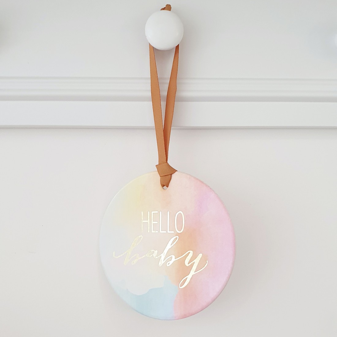 Che sia per un annuncio o semplicemente come decorazione, questo disco "Hello Baby" si fonderà perfettamente con la decorazione della cameretta del tuo bambino.