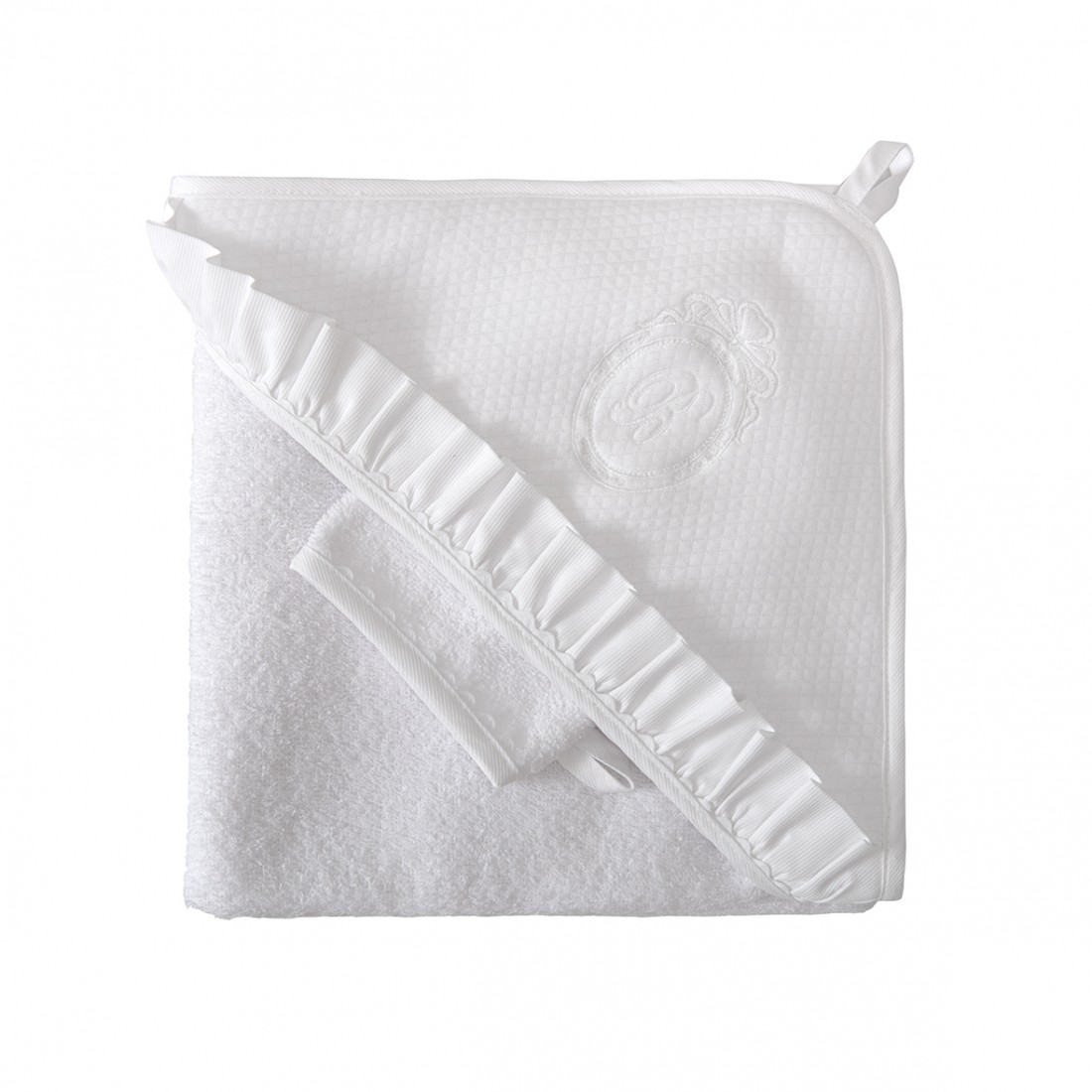 La mantellina da bagno può essere utilizzata dalla nascita del bambino. Si presenta sotto forma di un mantello avvolgente con cappuccio. Adattato alle dimensioni del bambino, l'asciugamano o la mantellina è generalmente realizzato in materiale di cotone per assorbire bene l'acqua sul corpo del bambino.