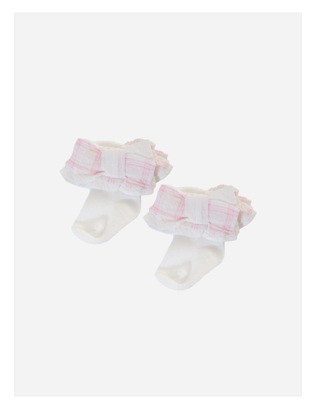 Adorabili calzini bianchi in jersey Patachou con volant rosa con stampa floreale e fiocco in seersucker alla caviglia