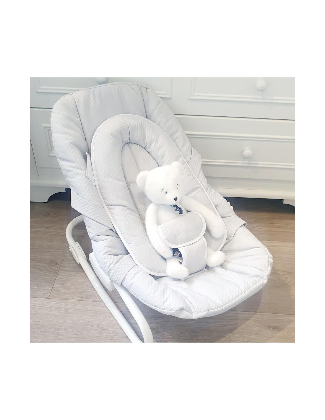Tieni il tuo bambino vicino a te con questa rilassante sdraio della gamma Rombo, una collezione chic e senza tempo per il tuo piccolo.