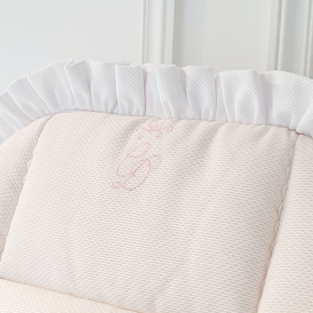 Sublime culla per neonati con i suoi ricami e le sue volant.