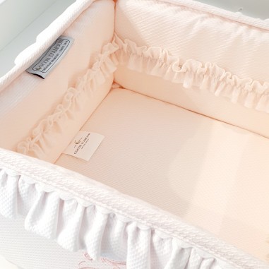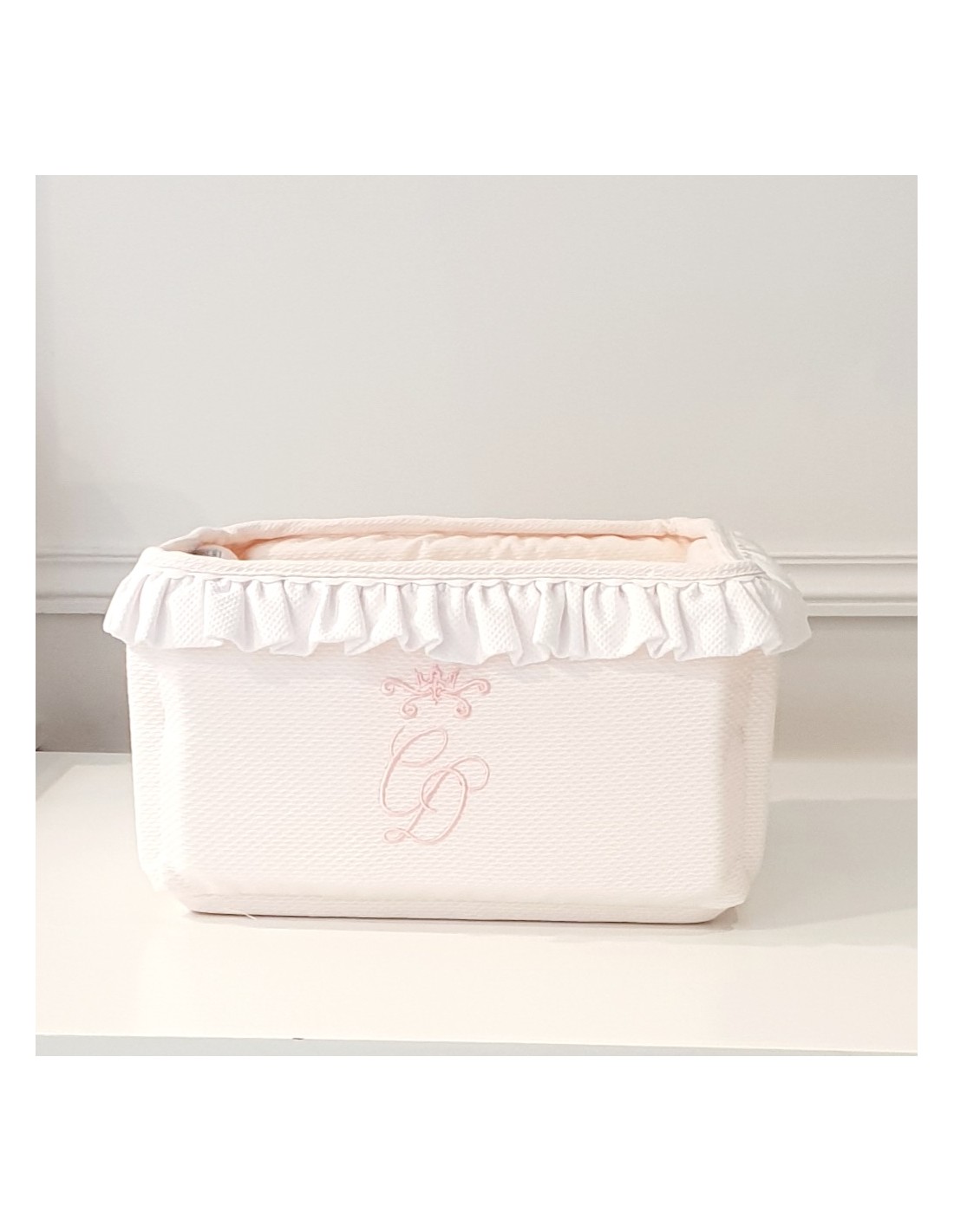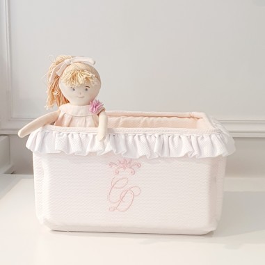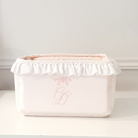 • Il cestino è sia decorativo che pratico, sia per i prodotti per la cura che per le bomboniere per la nascita. Permette di riporre biberon e altri prodotti.