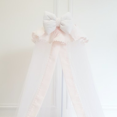 Il letto della gamma Léonie Il baldacchino è un insieme di ornamenti o tende, sospesi sopra un letto. Permetterà al bambino di sentirsi a proprio agio mentre dorme. Ciò gli permetterà di provare una sensazione di sicurezza quando verrà sistemato nel suo letto o nella sua culla. Naturalmente il baldacchino del letto può abbinarsi all'arredamento della cameretta del bambino. Decorato con un nastro intrecciato a serpentina, il baldacchino rosa e bianco della collezione Léonie si abbinerà perfettamente alla culla o al lettino del tuo bambino. È adatto sia come culla che come lettino. Darà il tocco finale al bozzolo del tuo bambino.