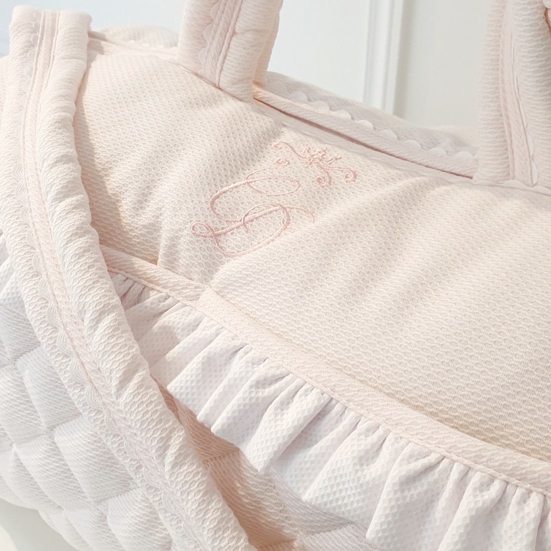 Sublime culla per neonati con i suoi ricami e le sue volant.